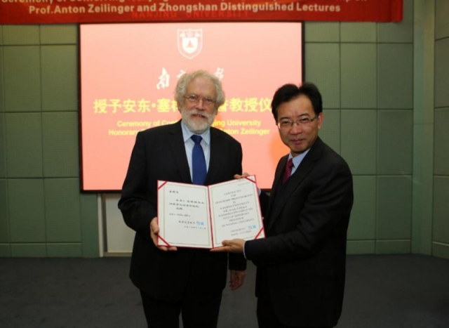 In the afternoon of November 3, a ceremony was held conferring honorary professorship on President Zeilinger on Gulou Campus.