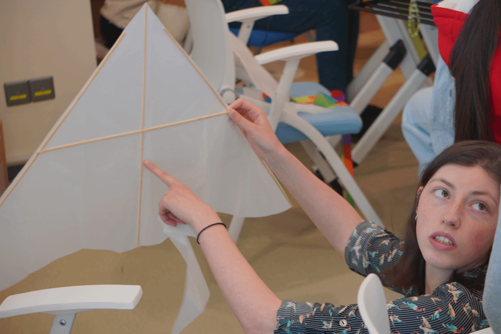 Next, participants flipped the kite to its front side to attach the wire—the strings that steer and control flight. This process entailed paramount precision: the upper bridle line was measured at 11.5 cm from the top, while the lower line extended 15 cm downward. These measurements ensured optimal lift and balance.