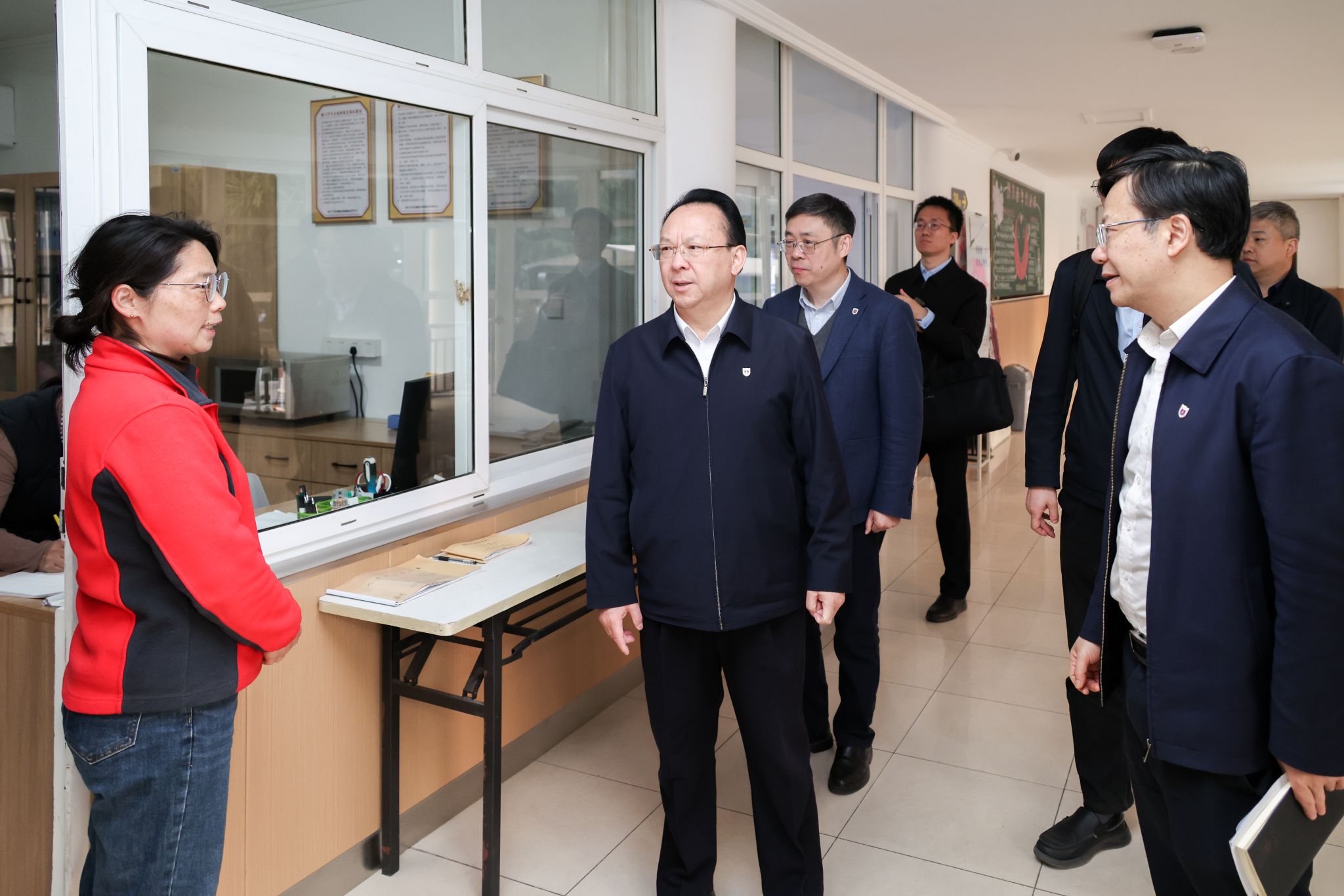 After the lecture, Tan Tieniu visited various places on Pukou Campus, including the Yuhui Building, the Zuo Dijian Sports Hall,the dormitories 17-21 and the No. 15 Student Canteen. During his visits, Tan Tieniu emphasized that responsible persons from relevant departments should truly understand students' thoughts and concerns and promptly solve urgent issues like commuting difficulties by optimizing bus routes and accelerating subway line construction, creating a comfortable, secure, and joyful campus environment at Pukou Campus, enhancing students' sense of belonging and happiness.
