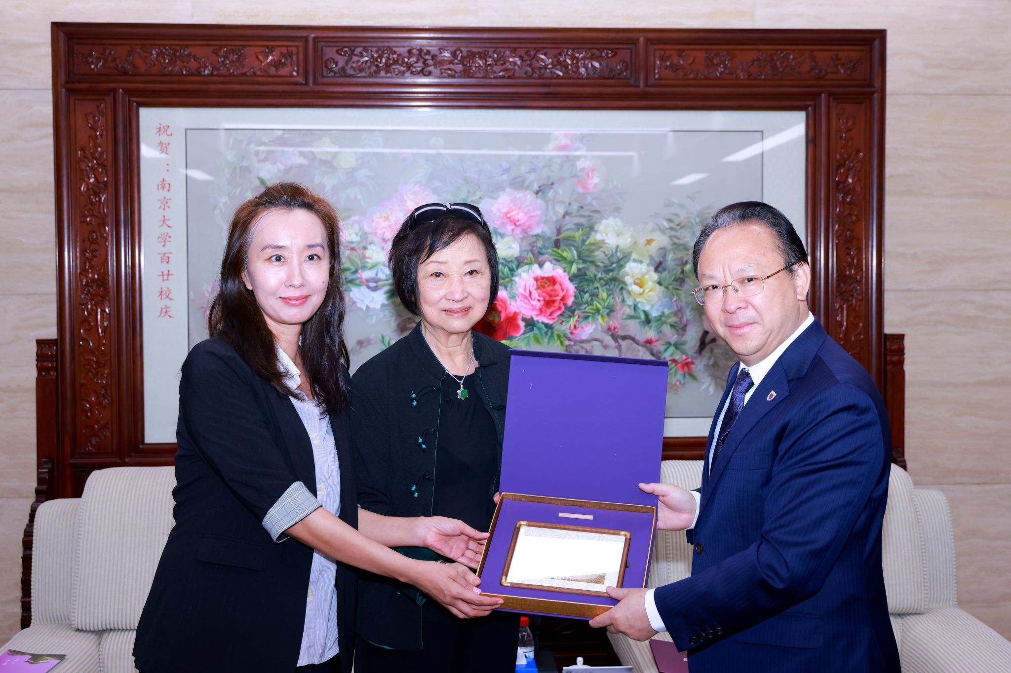 On behalf of the university, Tan Tieniu extended a warm welcome to Carrie Lam and Sophia Dan, and expressed heartfelt gratitude for their longstanding support for NJU. He introduced the latest development of the university. He highlighted the university's commitment to promoting collaboration between Jiangsu and Hong Kong. In recent years, NJU has strengthened its exchanges with Hong Kong and deepened its cooperation with various sectors of Hong Kong society. Tan expressed his hope to further enhance this cooperation, combining the wisdom of Jiangsu and Hong Kong to advance talent cultivation, research innovation, and cultural exchange.