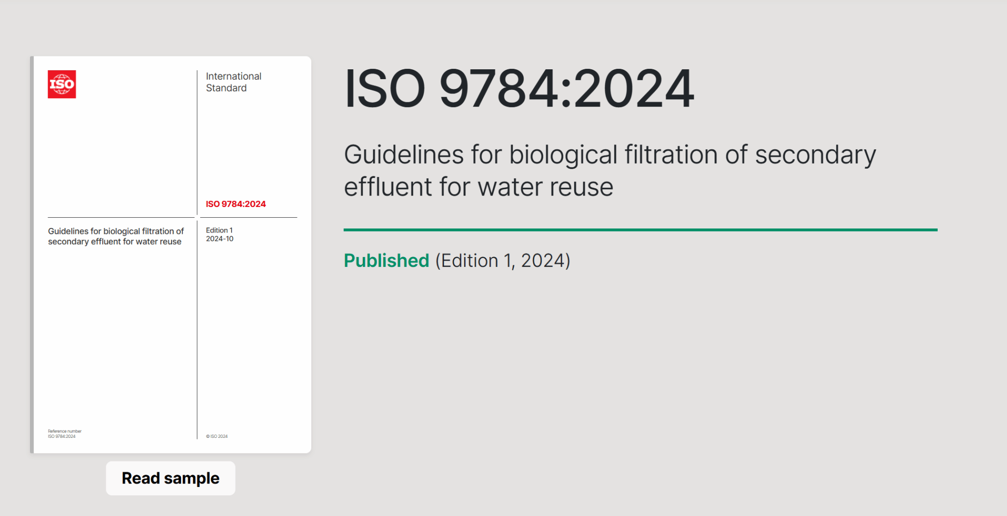 This document provides guidance for biological filtration of secondary effluent for water reuse. It specifies general recommendations, process components and technical recommendations of each component, post-treatment process and water reuse applications.