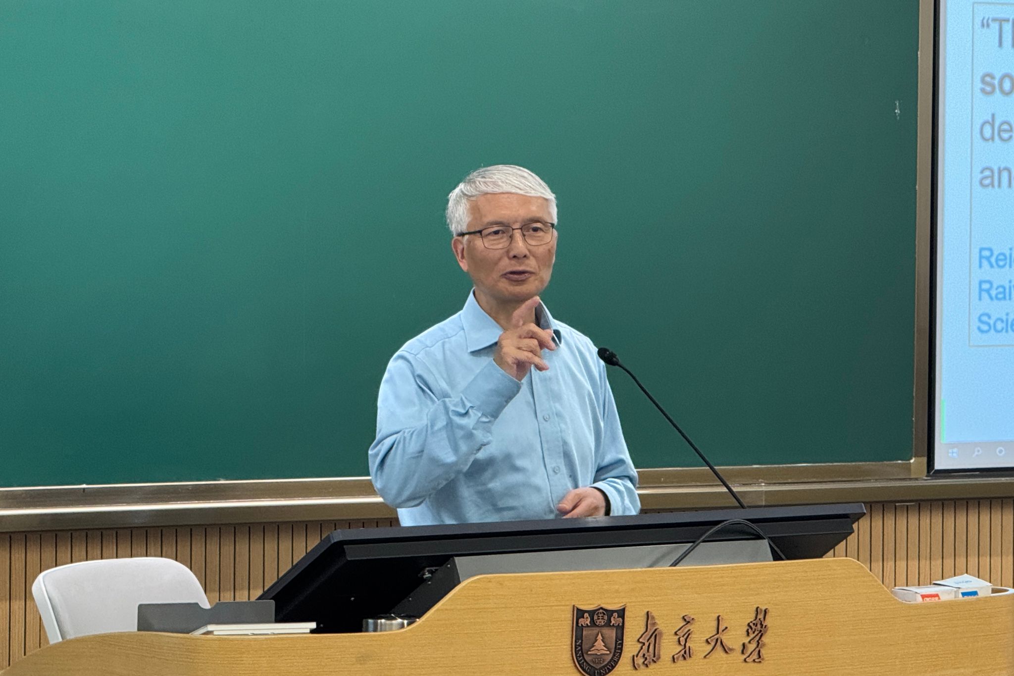 On the afternoon of May 23, the Nanjing-Helsinki Institute Lecture Series at Nanjing-Helsinki Institute in Atmospheric and Earth System Sciences, Nanjing University (NJU Nanjing-Helsinki Institute) officially commenced on Suzhou campus, with a branch venue set up at the Xianlin campus simultaneously. The inaugural lecture focused on frontier topics in "Atmospheric and Earth System Sciences," featuring keynote reports by foreign academician of the Chinese Academy of Sciences (CAS), Chen Deliang, and American climate scientist Dai Aiguo. The event was hosted by Ding Aijun, Assistant President of NJU and Dean of Nanjing-Helsinki Institute. Fu Congbin, Academician of the CAS attended online.