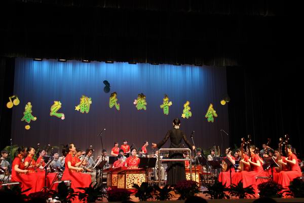 整场演出表演了15首乐曲,形式有民族管弦乐合奏、古筝独奏、弹拨乐合奏、琵琶独奏等等,全面展示了中华乐器的广博、精神,民乐团的男演奏员们穿着灰色的中山装,女演奏员们穿着改良的红色旗袍,指挥张静波一袭黑色的改良式旗袍上绣着牡丹花,当他们在舞台上一亮相,下面一片惊呼:“好漂亮!”