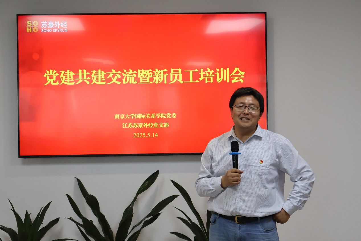 为助力学生拓宽国际视野、明晰职业方向,5月14日下午,学院党委书记李跃华带队,外交与国际事务系主任毛维准教授、辅导员赵娟及学生代表走进苏豪外经公司参观访问,开展校企党建共建活动。苏豪外经公司党支部书记、董事长吴福强,党支部副书记、总经理翟杰,副总经理郭楠楠等参加活动。双方围绕企业国际化发展、跨国供应链实践、校企合作等议题展开深入交流。