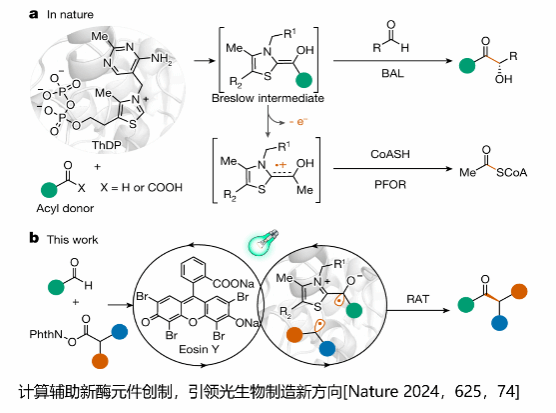 五年来,研究院PI间的跨学科合作日渐深入,高水平研究成果不断涌现。研究院2021年自海外引进的酶定向进化方向PI黄小强教授联合研究院理论计算方向PI梁勇教授在新光酶元件创制方面取得重大原创成果(Nature, 2024),引领了光生物制造新方向,并在此基础上构筑非天然光生物催化体系,赋能绿色生物制造(Nature 2025);来自生命科学学院的戈惠明教授与来自化学化工学院的王欢教授联合攻关聚酮化合物生物合成并取得重要突破(Nat. Synth. 2024);医学院的甘振继教授和方雷教授联合化学化工学院的陈韵聪教授发展了通过修复线粒体蛋白稳态来治疗与脂肪衰老相关的代谢紊乱的新方法(Nature Cell Biology, 2023);现代工学院的张晔教授联合化学化工学院曹毅教授将金属流体引入凝胶体系,制造出兼具优异力学和电学性能的生物材料,在生物电子和软体机器人方面具有巨大的应用潜力(Adv. Mater. 2024)。这些来自多个学科和领域的青年学者合作取得的成果不仅推动了学科边界拓展,更为化学与生物医药前沿探索提供了新思路。