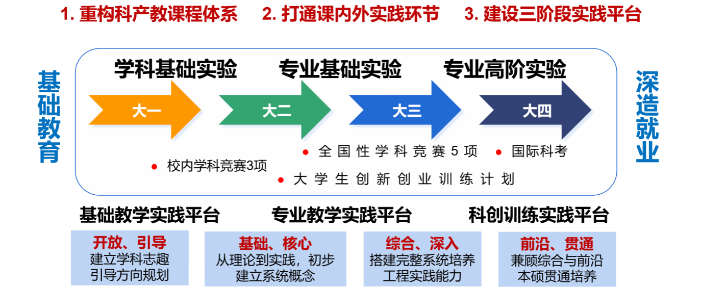 凯发k8官网电子信息专业国家级实验教学示范中心依托自身优质实验资源,聚焦人才培养中实践教学痛点,开展了系统性的实践教学改革。该成果通过三大核心举措构建协同育人实践教学体系:一是重构跨学段实验课程体系,将实验课程科学划分为学科基础、专业基础和专业高阶三个层次分类建设,形成循序渐进的课程培养链条;二是突破传统育人模式中课程、竞赛、科创实践环节相互割裂的局限,构建“实验课程-学科竞赛-科创训练”的协同机制,使课程、竞赛、科创三者相互渗透,形成螺旋上升的育人闭环;三是建设层次化实践教学平台,打造基础教学、专业教学和科创训练三大平台,通过科产教融合育人模式,显著提升学生实践能力和创新能力,为电子信息领域高素质创新人才培养提供了可复制、可推广的实践范式。